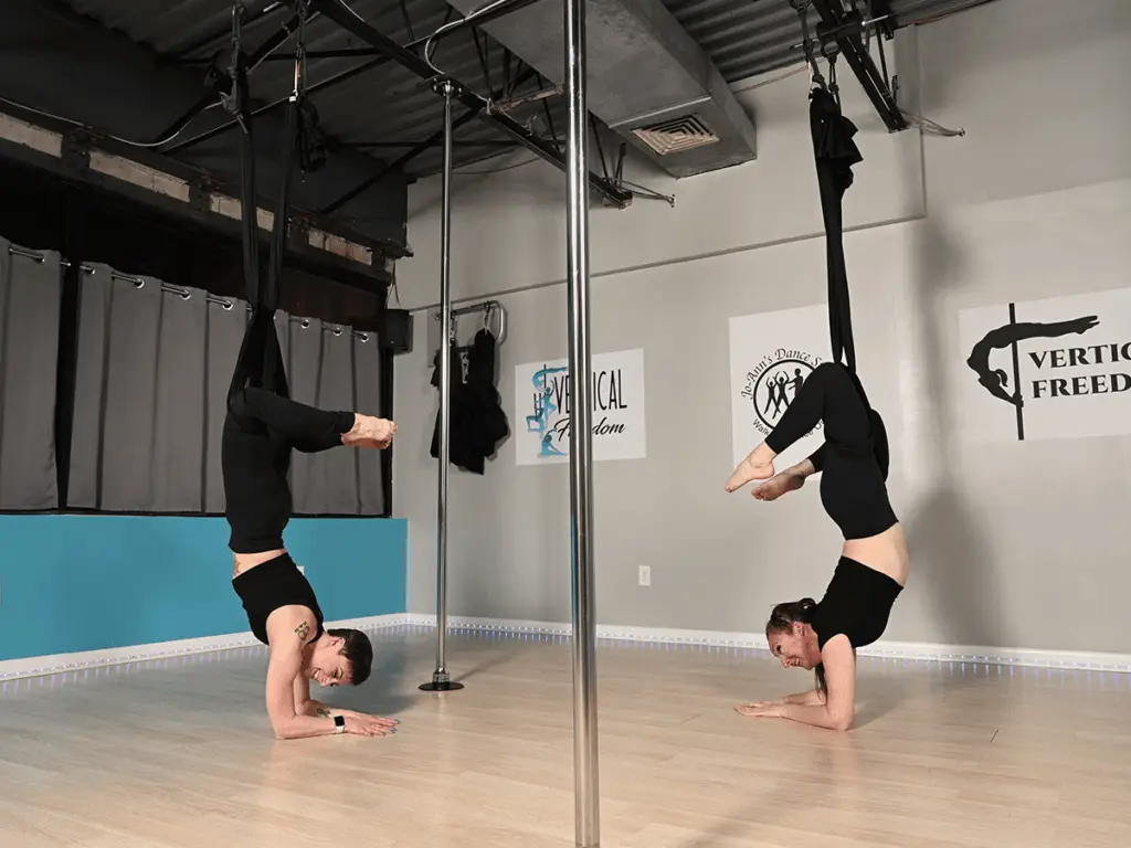 Vertical Freedom was born out of the need to provide the community with an all-inclusive, welcoming studio. No one is turned away, regardless of age or physical fitness level. We have classes that fit everyone’s needs…whether you prefer more classical classes like barre (one of the studio’s best kept secrets), Pilates, or Flexibility…to all of our Aerial classes from Pole, to Aerial Yoga, to Bungee Fitness, to Lyra!