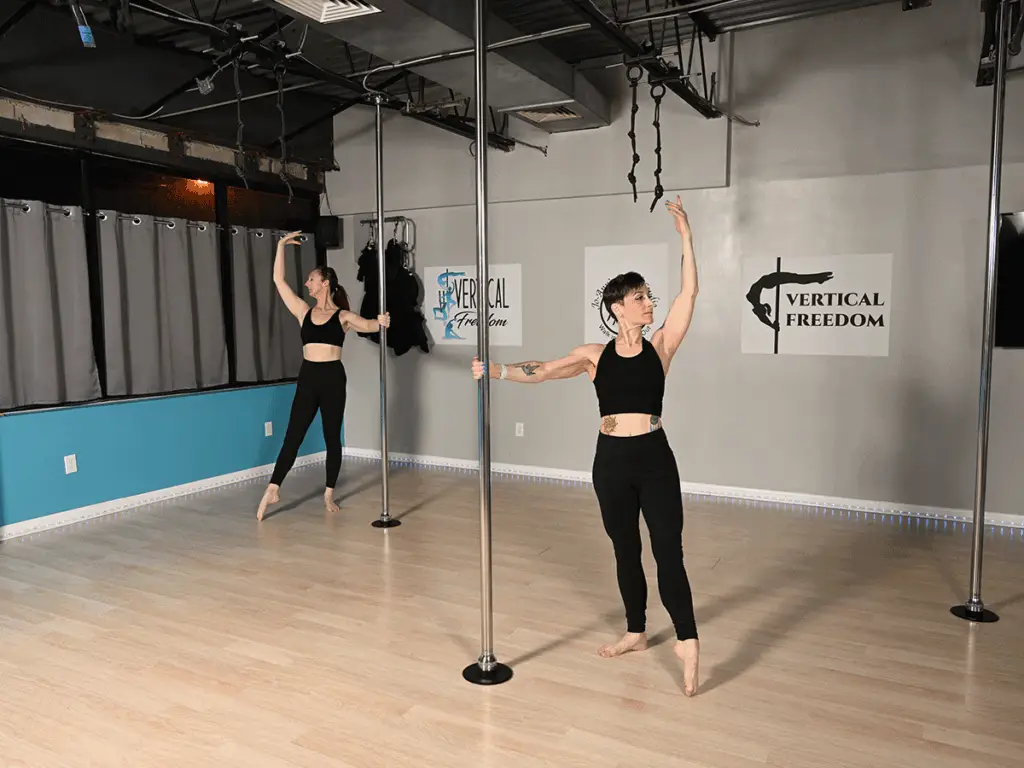 Vertical Freedom prides itself on a warm and welcoming atmosphere. ANYONE can pole dance, regardless of age, shape, size, gender or fitness level. This is a supportive environment devoid of judgment. We welcome and encourage everyone no matter where they are in their pole journey. Don’t let fear of the unknown stop you from this life changing experience!